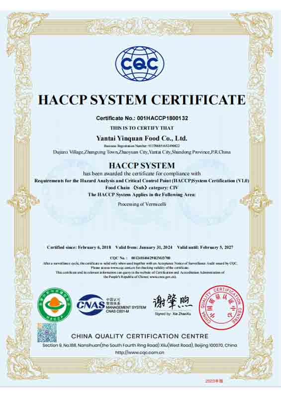 HACCP体系认证证书